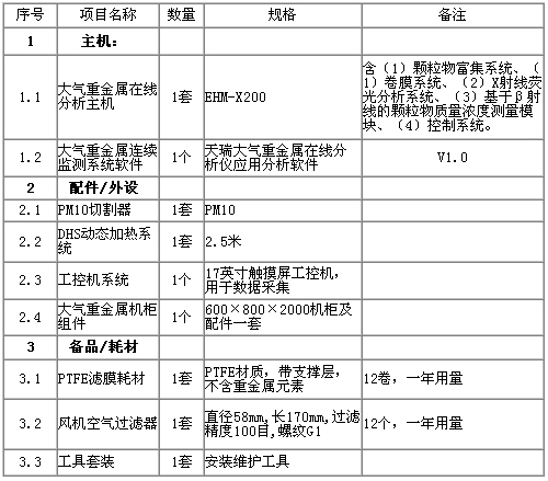 表1 j9九游会仪器 EHM-X200大气重金属监测仪技术参数