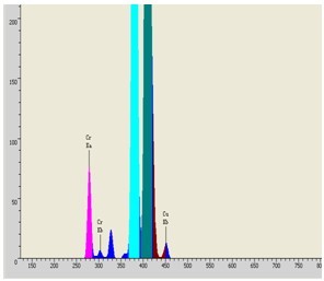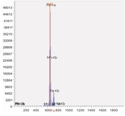 使用EDX 9000C仪器对汽车配件玻璃样品进行测试,测试时间1秒,其测试谱图和数据如下图: